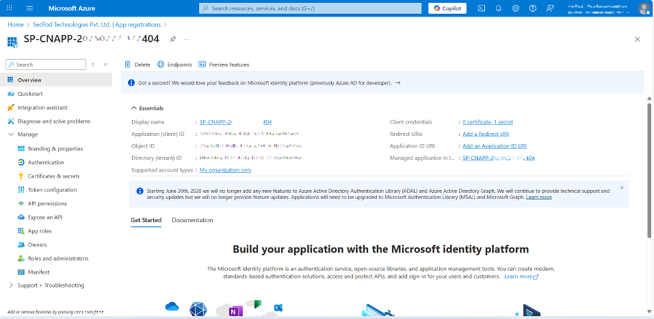 Once the search results are retrieved, click the application name(link) under Display name column to open the application details page.