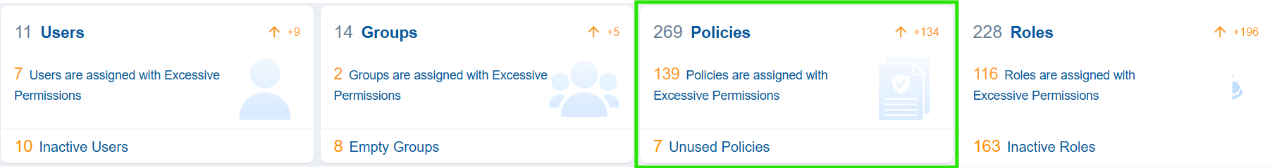 — Excessive: Shows policies that have excessive permissions, meaning they grant more access than necessary.
