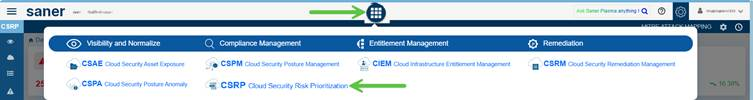 From the App Launcher, select Cloud Security Risk Prioritization(CSRP).