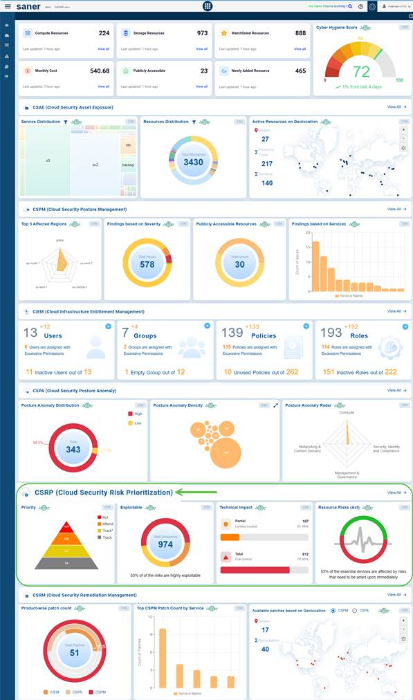 Cloud Security Risk Prioritization (CSRP) is an independent tool that functions alongside other tools such as Cloud Security Posture Management (CSPM), Cloud Security Posture Anomaly (CSPA), Cloud Infrastructure Entitlement Management (CIEM), and Cloud Security Remediation Management (CSRM). As a standalone tool, it can be enabled or disabled from the service provisioning section within the account settings of each user.