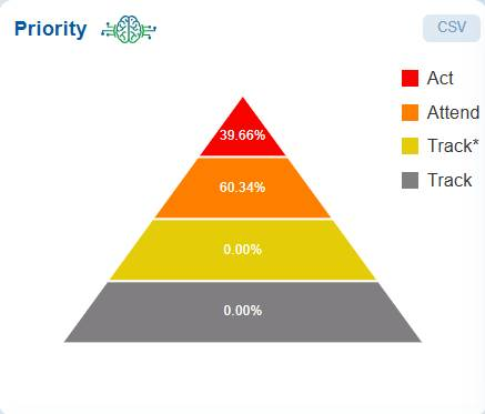 The Priority pyramid chart organizes risks into four prioritized categories: Act, Attend, Track*, and Track. This framework is designed to guide remediation efforts effectively.
