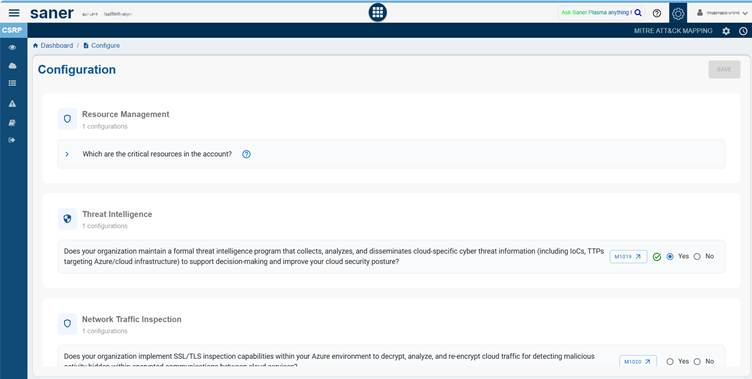 For example in Saner CSRP MITRE ATT&CK Framework Mappingdashboard view, the tactic TA0005 (Defense Evasion) reflects the attacker’s goal of avoiding detection, the technique T1562.008 (Disable Cloud Logs) shows how they might achieve it, and the mitigation M1018 (User Account Management) suggests a defensive action to counter the risk. Together, these codes create a clear mapping from attacker goals to actions and the corresponding defensive strategies.