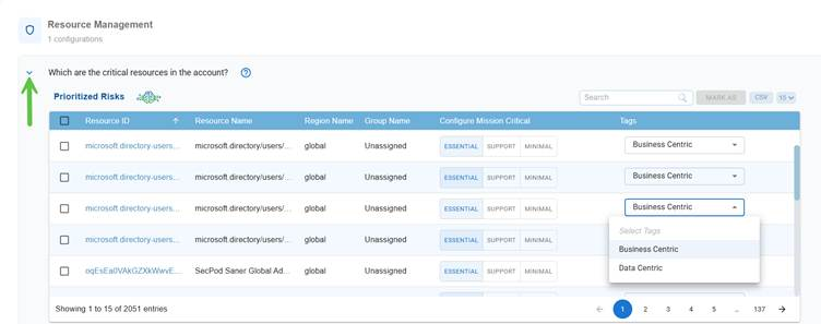 Click the link to read more on how the configured tags help to Assess and Prioritize Risks Across Resource Categories from the dashboard.