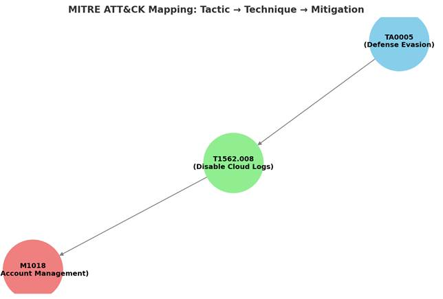 Here’s a simple visual mapping of how MITRE ATT&CK Tactic (goal) connects to a Technique (method) and then links to a Mitigation (defense measure) based on Saner CSRP MITRE ATT&CK Framework Mapping.