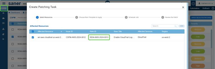 Clicking the Fix icon corresponding to a risk redirects you to Saner CSRM to begin your patching activities.
