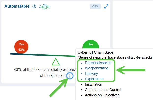 Saner CSRP provides the codes for each Risk ID across the 3 code categories. Move your cursor over the code in Tactics, Mitigation, and Techniques Exploited columns to see the additional associated tactics, techniques, or mitigations beyond the one currently displayed.