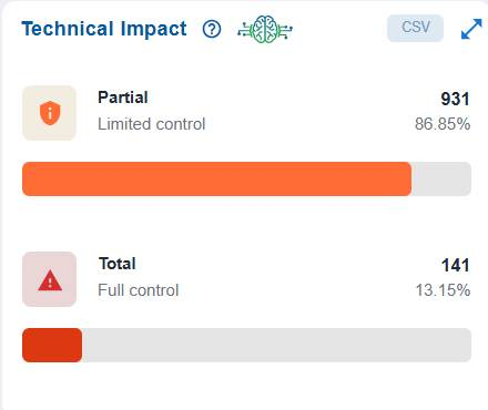 The Technical Impact block displays the distribution of misconfigurations based on the extent of control the adversary gets over the component.