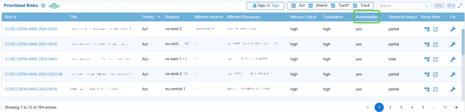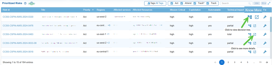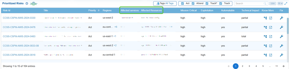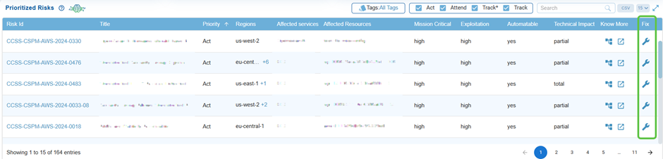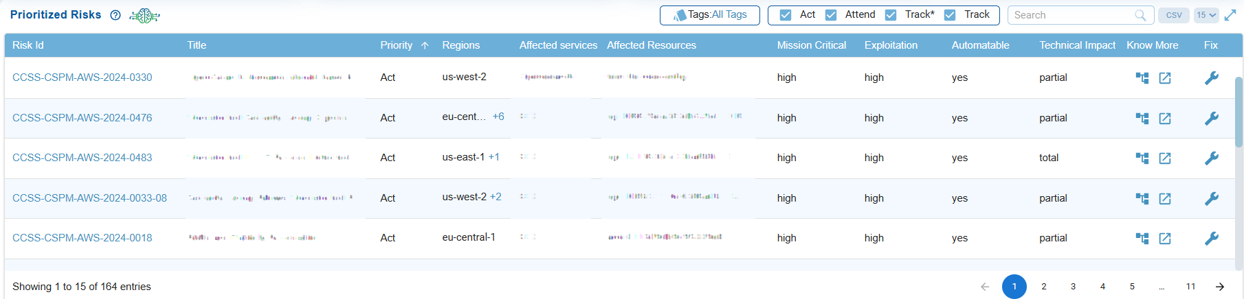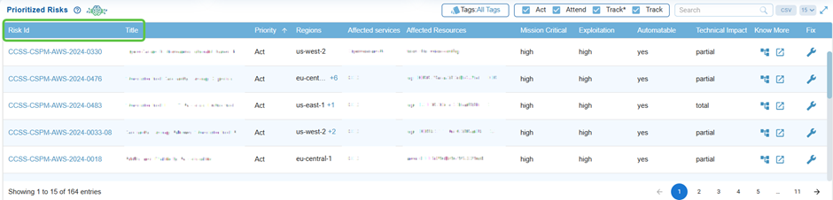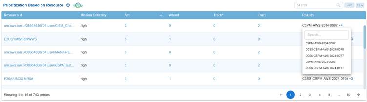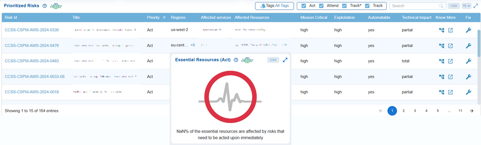 Click the Essential Risks(Act) chart from the CSRP dashboard to open the Prioritized Risks page and begin your remediation tasks then on.