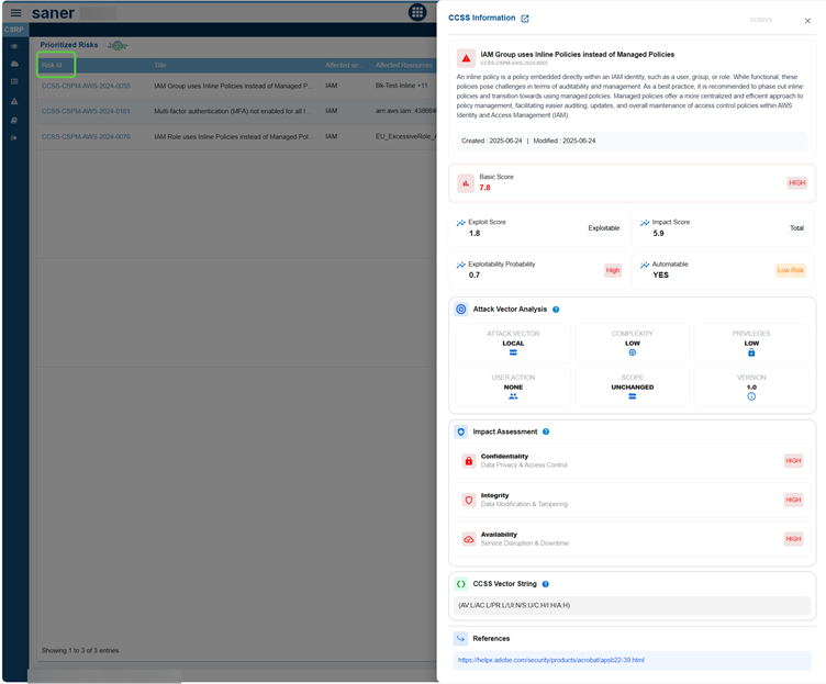 The Saner CSRP(Cloud Security Risk Prioritization) framework offers a structured method for assessing, analyzing, and managing risks within cloud environments. It allows organizations to view risks at both the organization and account levels, classify these risks based on scoring criteria, and align them with security practices and industry frameworks like MITRE ATT&CK.