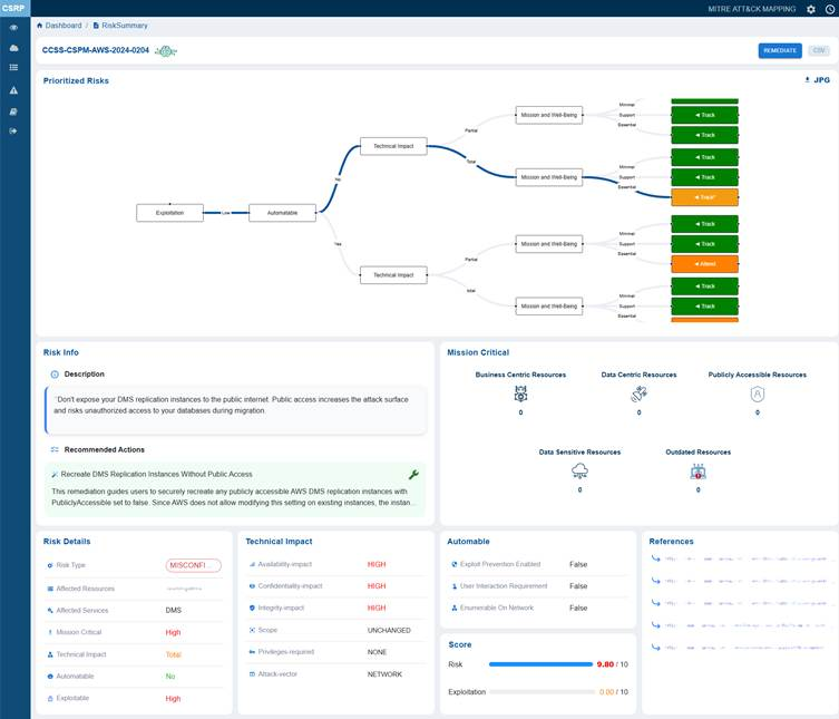 With detailed dashboards, decision trees, and remediation options, the CSRP framework assists teams in identifying exploitable risks, evaluating their potential technical impacts, and prioritizing actions for critical resources. Furthermore, it supports customized reporting and visualization, allowing organizations to continuously monitor risks, assess the possibility of automation, and ensure that remediation efforts align with business priorities.