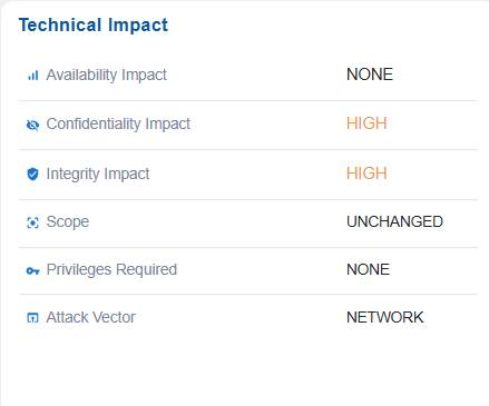 This structured view helps stakeholders gauge both the feasibility and consequences of exploitation, supporting informed prioritization and remediation planning.