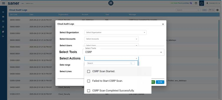 Audit logs are essential to keep track of activities happening in Saner Cloud Application, as they offer detailed visibility into login activities, scans, and configuration changes. These logs help track important actions, such as when a scan begins and ends, as well as updates to configurations for risk prioritization and cloud hygiene scores. This improved oversight facilitates better decision-making based on accurate information.