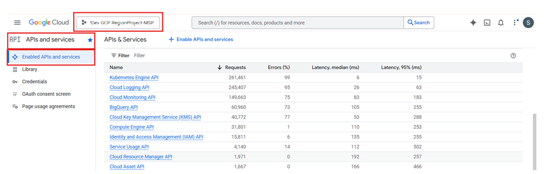 Click here to view which APIs are required to be enabled for onboarding. Navigate to “Enabled APIs and services” under “APIs and Services” to cross check.