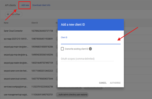 Workspace Super Admin – Permission to add the necessary scopes for the client id generated