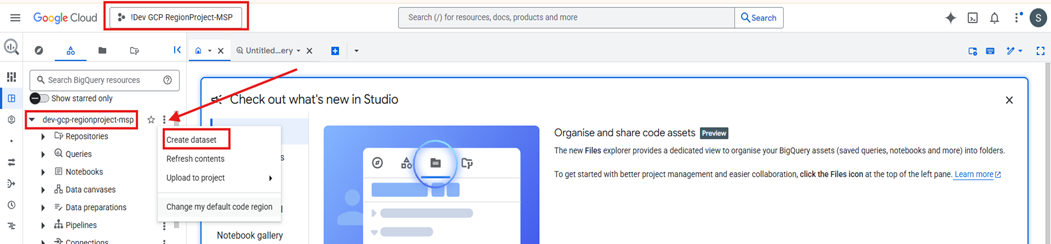 Step24: In the left panel, click on the arrow to expand options under the Project ID and click on the “Create dataset” as shown in the below image.