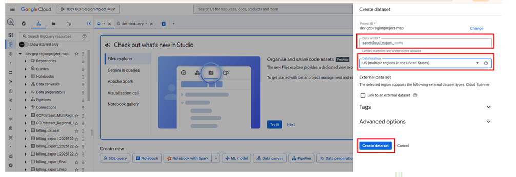 Note : Please keep a note of Project ID, Dataset ID, Dataset Location and Billing Account ID which you will use in below steps for future onboarding steps.