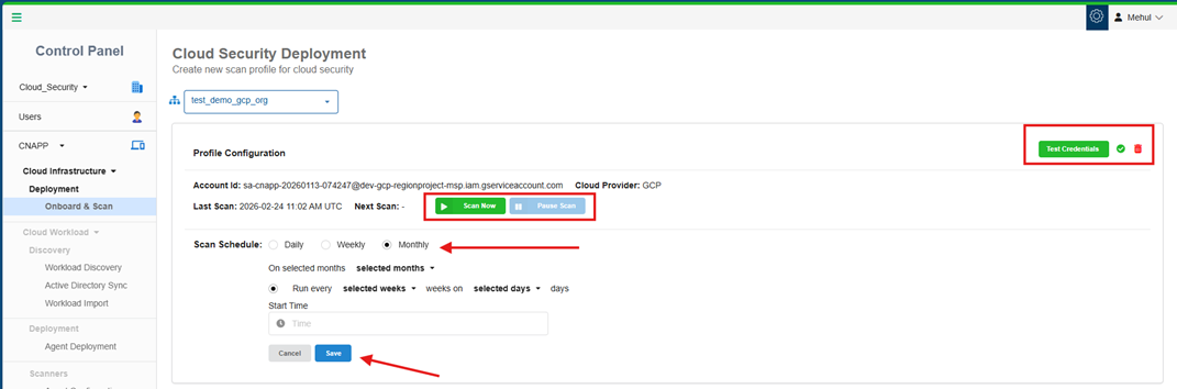 Step1: Under Saner CNAPP, click on “Onboard & Scan”.