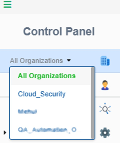 Step1: In the Control Panel, open the All Organizations drop-down menu and select the organization for which you want to create the new account.