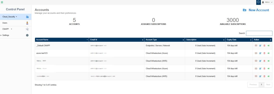 Step2: To create a new account, click the New Account button on the top-right of the page.