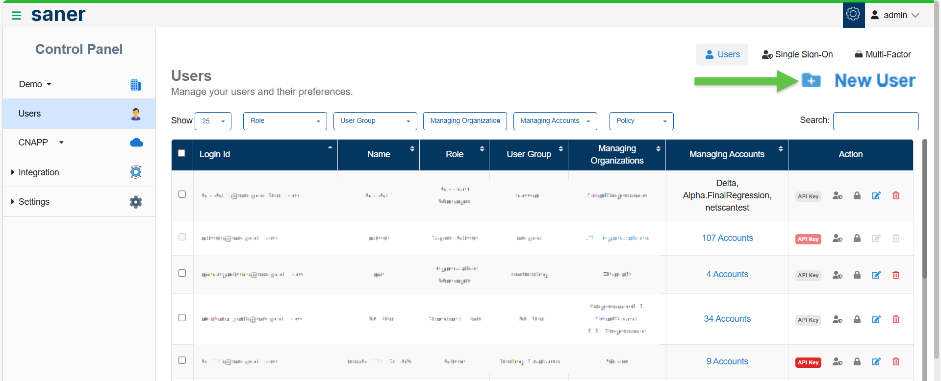 1. Sign in to the Saner web console as an Admin, Org Manager, or Account Manager.
