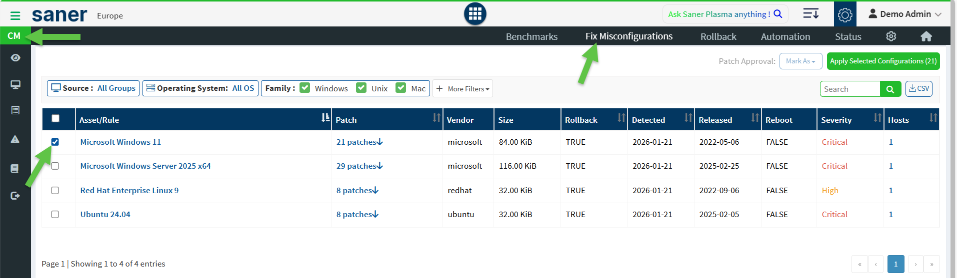 - Default Compliance – Each operating system will have individual rules by default. Saner CM sets the values for this.
