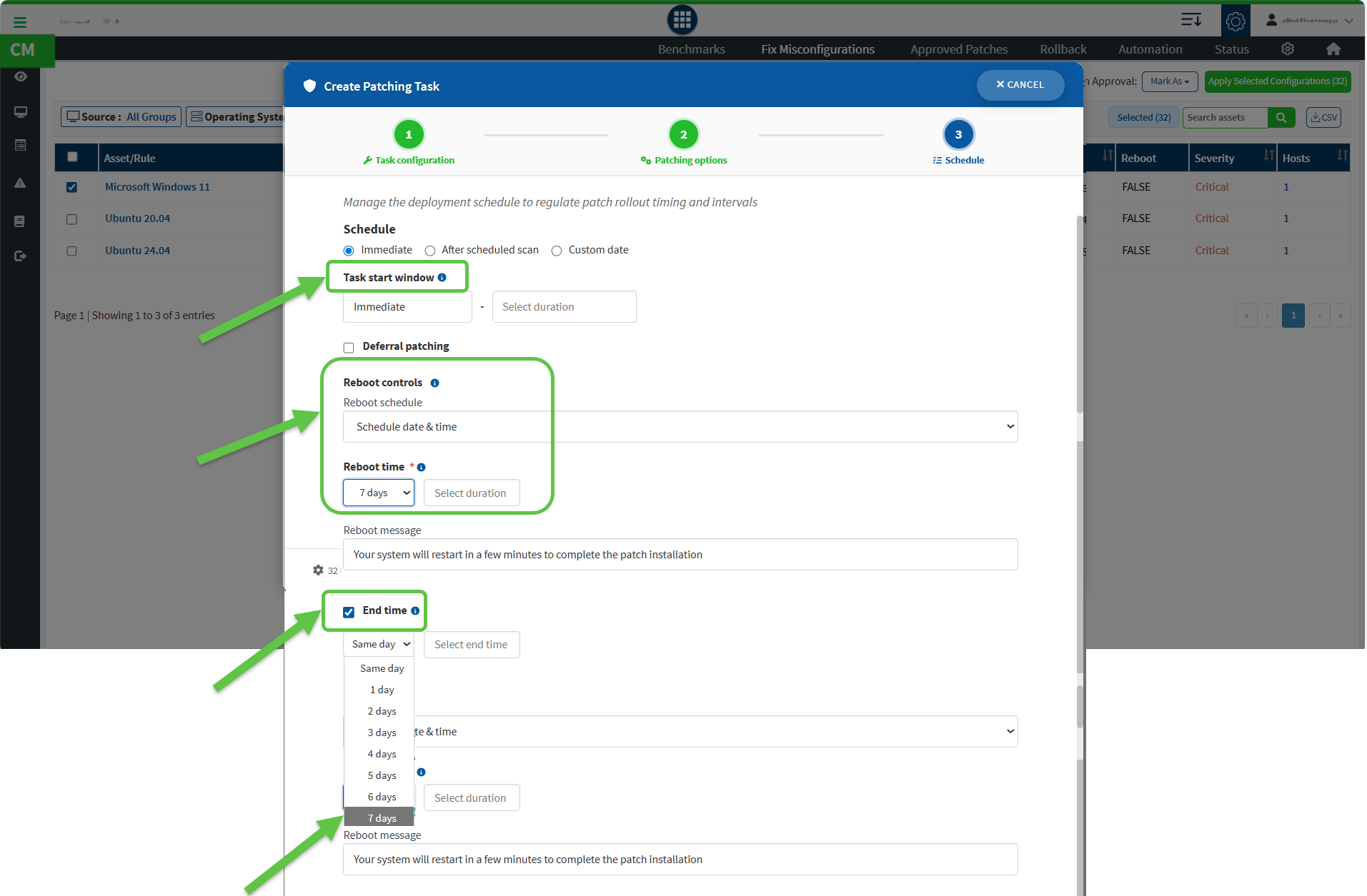 The Task Start Window defines the time range within which the patching task is allowed to begin execution.
