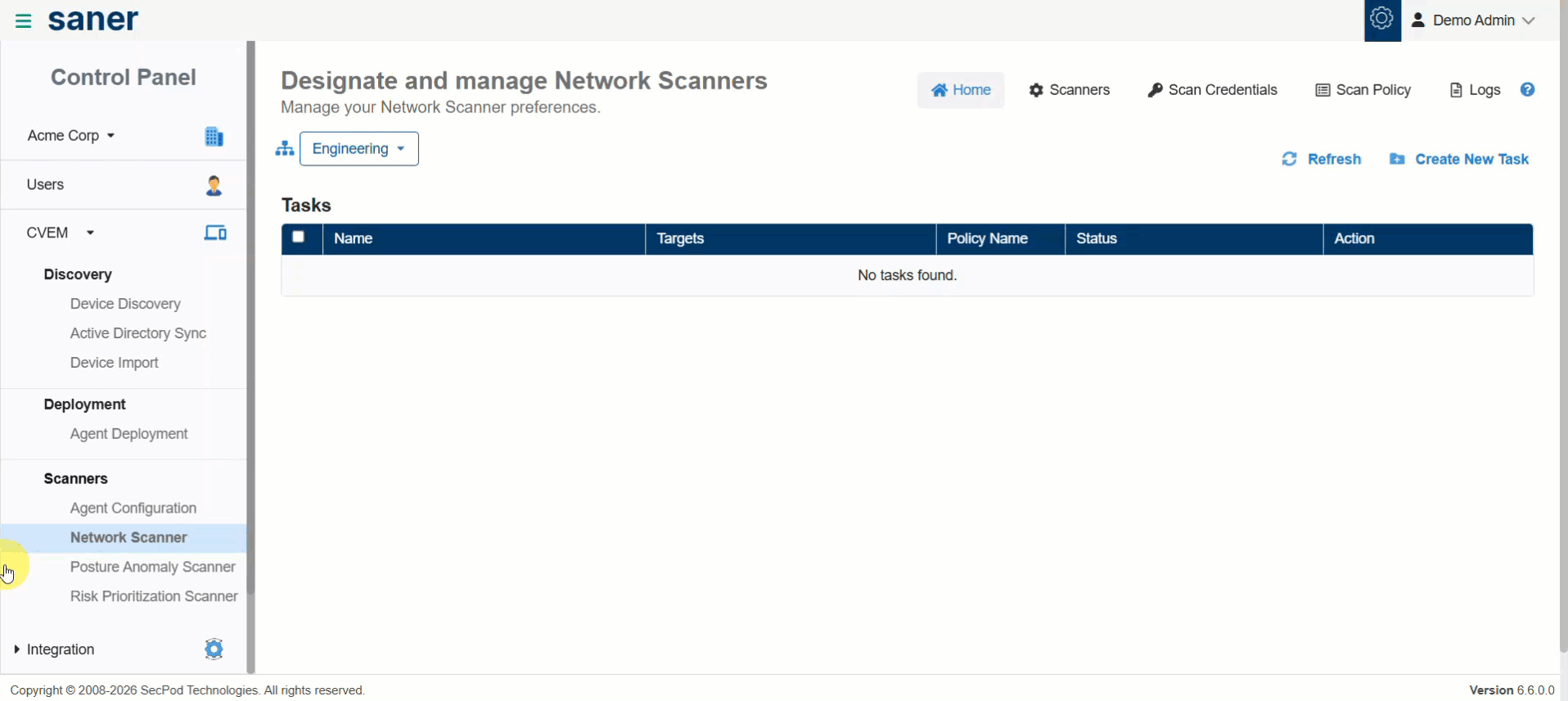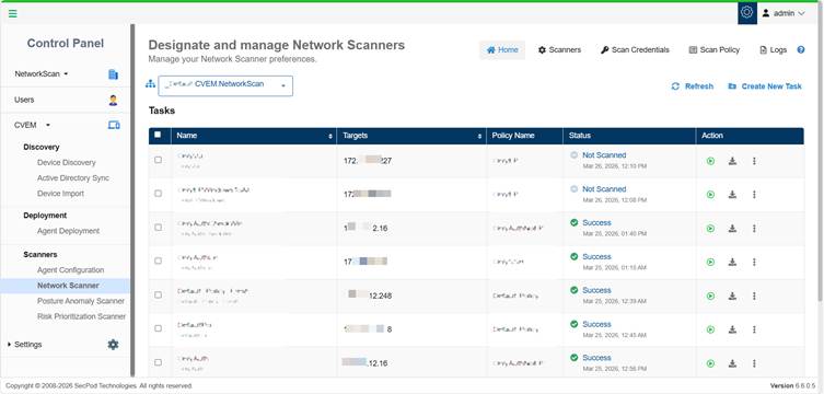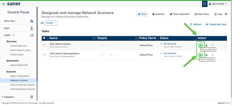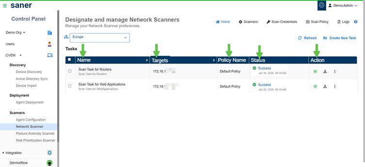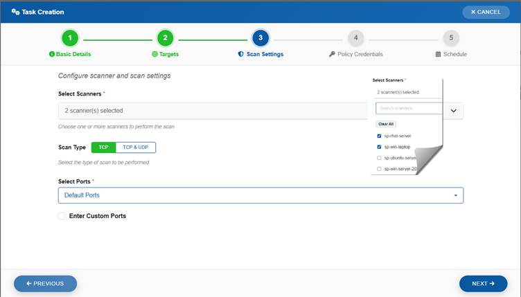 Scan execution is managed through designated network scanners that can be reused for multiple tasks. These scanners can also be configured as Global Scanners, enabling sharing across various accounts or organizations. This ensures consistent coverage, even in environments without dedicated scanning infrastructure.