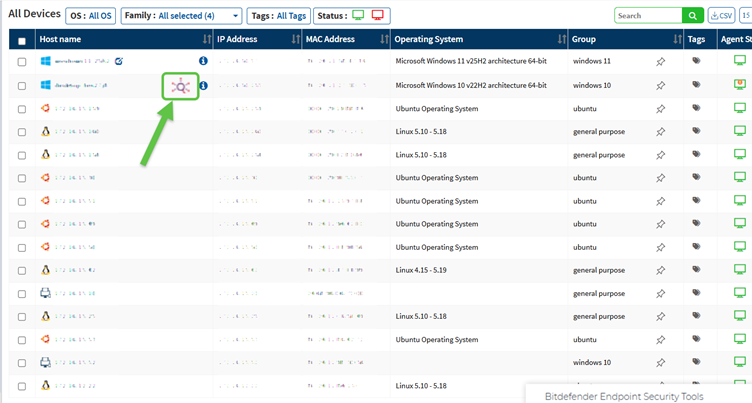 | | Starts the Network Scan. If this icon is disabled, understand that the device is either shut down or the Saner Agent on the device is inactive. |