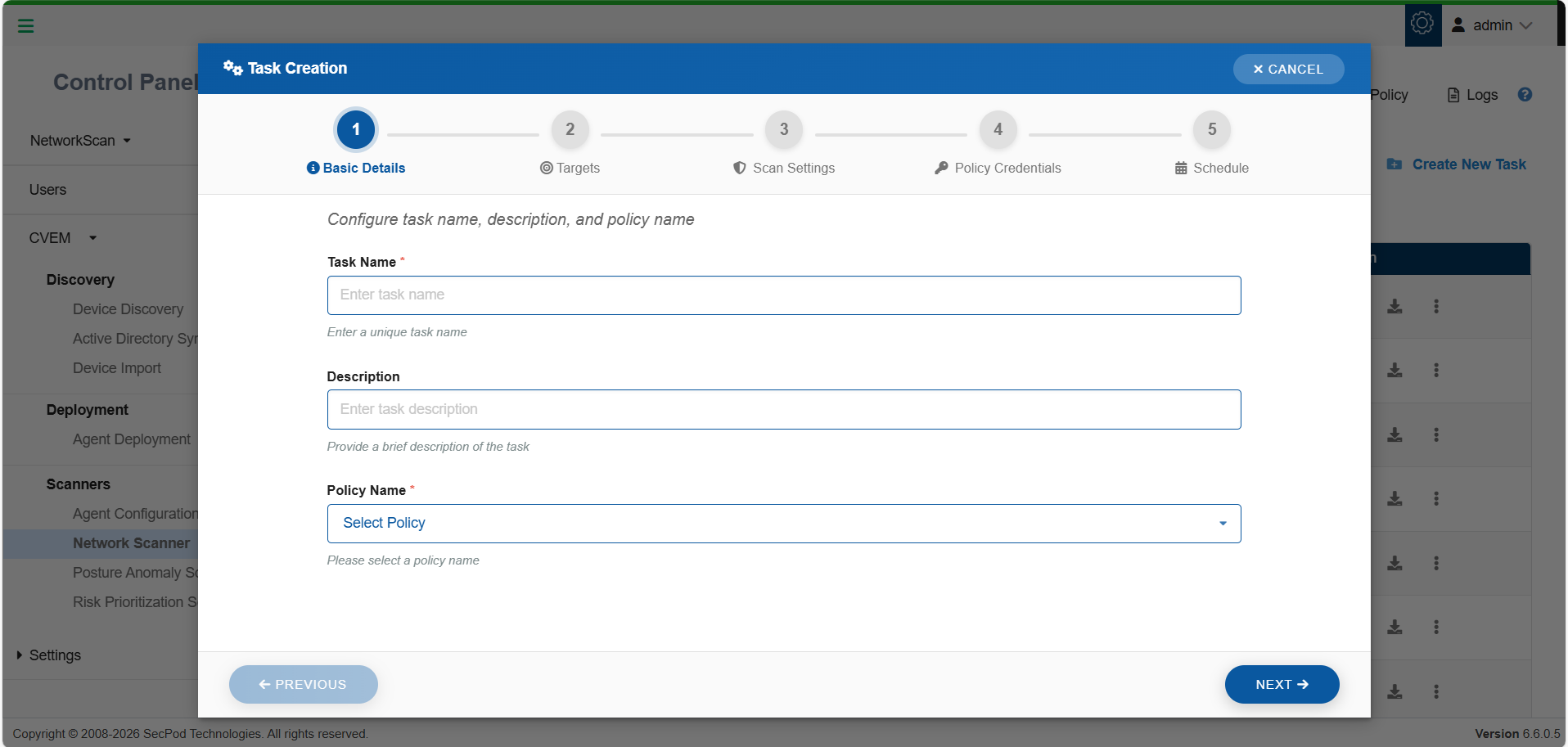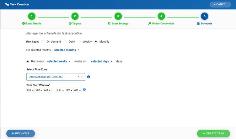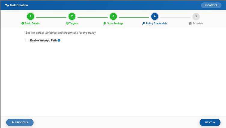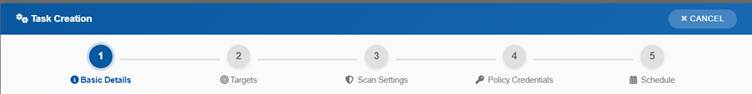 Start a new scan task using a guided multi-step process.