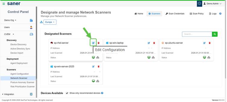 - In the Designated Scanners section, click the Edit Configuration icon
