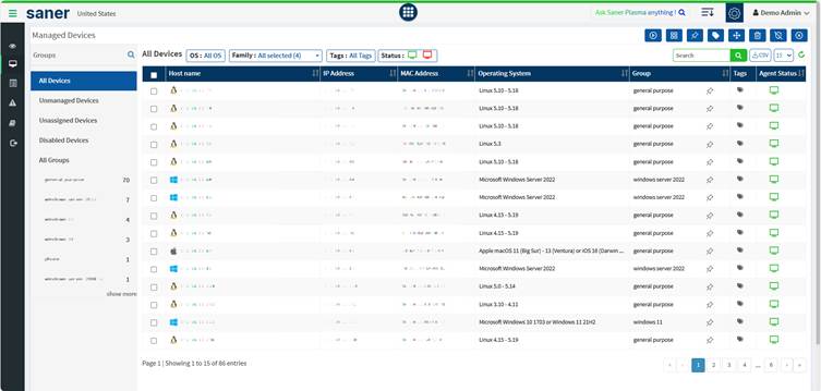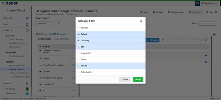 You can filter and select devices recommended by Saner for better scan performance.