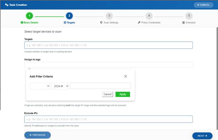 - Target devices (IP addresses or ranges)