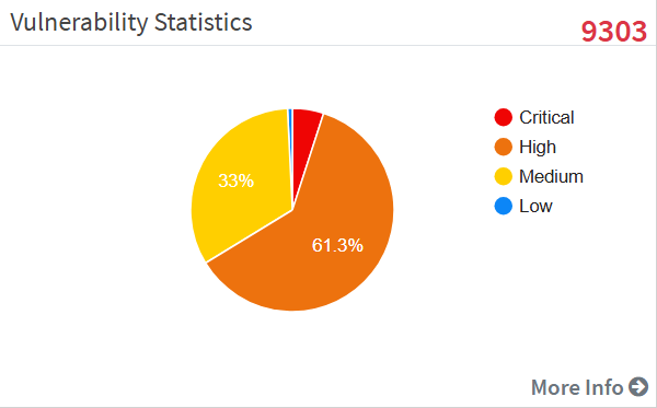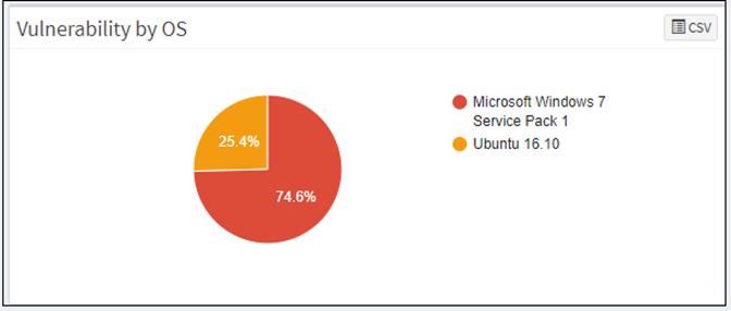 This page shows the list of vulnerabilities categorized by the operating system with the help of a pie chart. You can download the excel sheet with the list of vulnerabilities based on the operating system by clicking on the CSV icon.