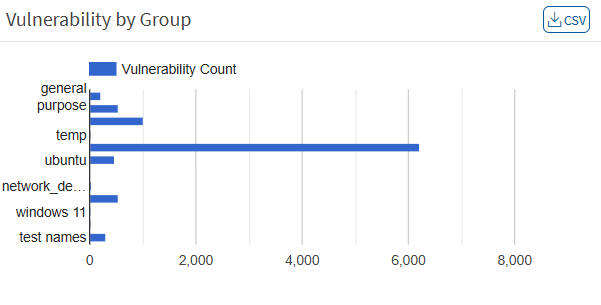 This page shows the list of vulnerabilities, categorized by the groups with the help of a graph. You can download the excel sheet with a list of vulnerabilities based on the group by clicking on the CSV icon.