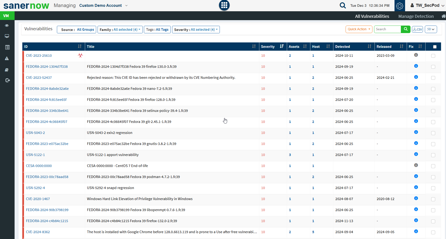 Step 2: You will be directed to the All Vulnerabilities page. Here, you can view all the vulnerabilities found by VM tool.