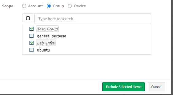 - You need to select the scope. You can choose between Account, Group, and Device.
