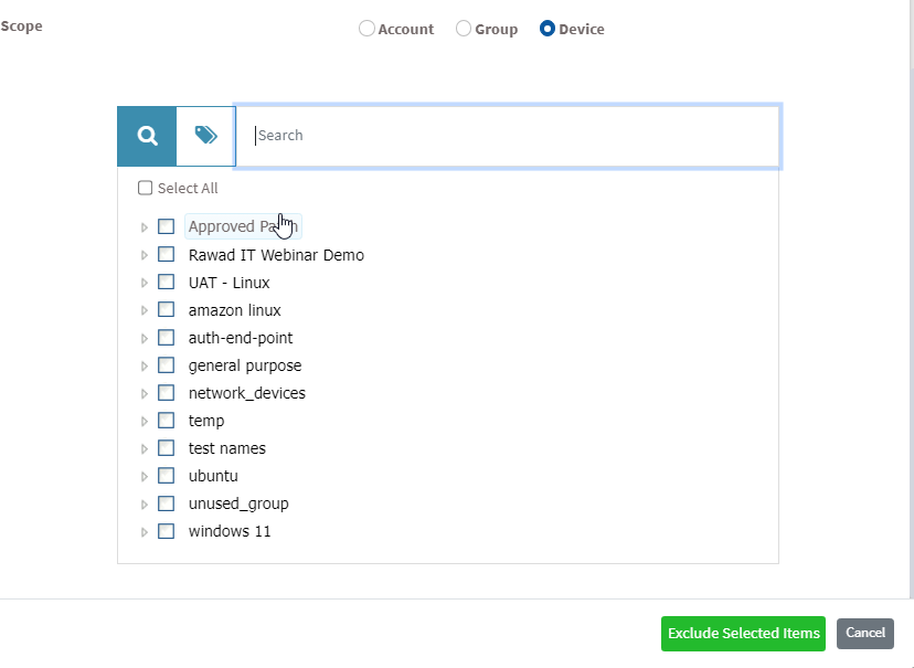 - Scope – You need to select the scope. You can choose between Account, Group, and Device.