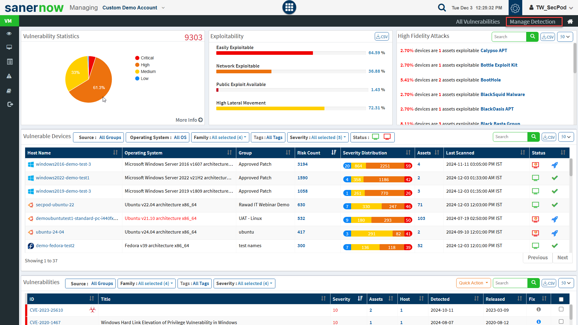 Step 1: On the VM Dashboard, click on Manage Detection located at the top right corner of the page.